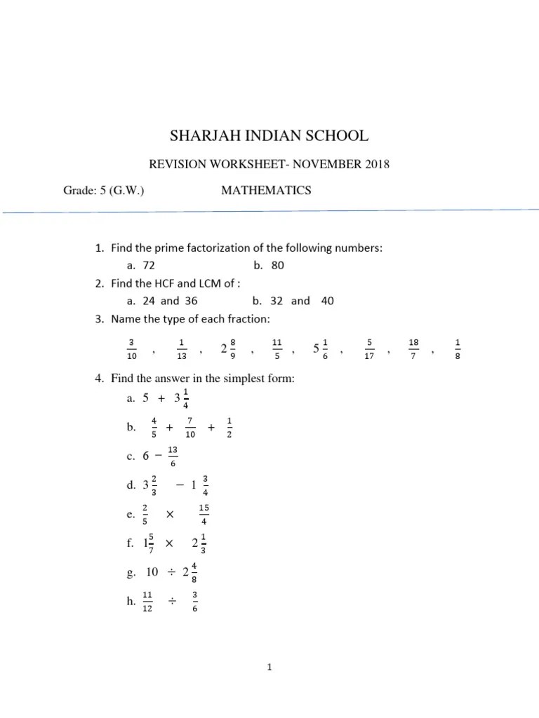 Math (worksheet 1)